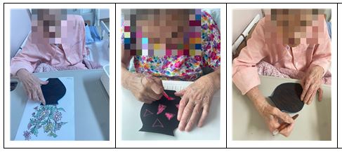 사포에 색을 칠하는 것이 처음이 어르신들은 흥미를 느끼며 활동을 하였습니다.