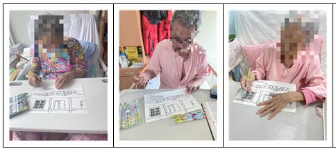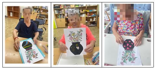 도안을 보고 이야기를 나누고 색을 칠하는 작업을 2회기에 나누어 하고
