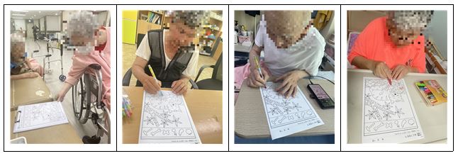 한철*어르신은 찾는 것도 잘 찾으셨지만 찾은 물건에 색칠도 예쁘게 해주시네요.